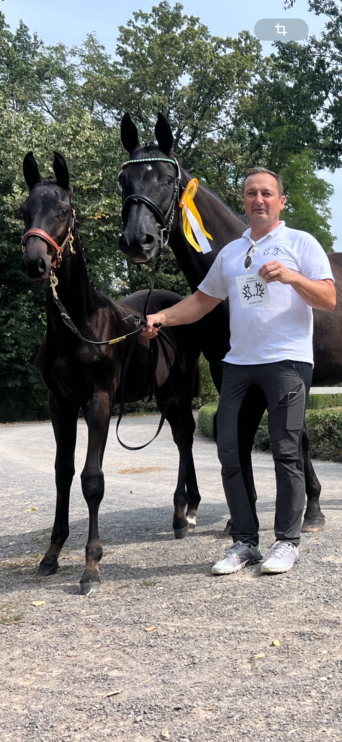 Ein Juwel aus bester Linienzucht in schwarzbrauner Jacke und mit Zukunftsperspektive für Hengstaufzüchter. Seine Abstammung repräsentiert höchste Exklusivität, denn als Sohn des prämierten Bewegungsvererbers Kenneth entspringt dieser Schwarzbraune einer mütterlichen Linie der Sonderklasse. Mit der Generationenfolge der Leistungsvererber Gribaldi, Sixtus, Habicht, Ibikus im fallenden Stamm der Herbstgold-Familie bleiben keine Wünsche offen. 1 c - Prämie im Championat des Zuchtbezirks Nordost. Besichtigung erwünscht.
