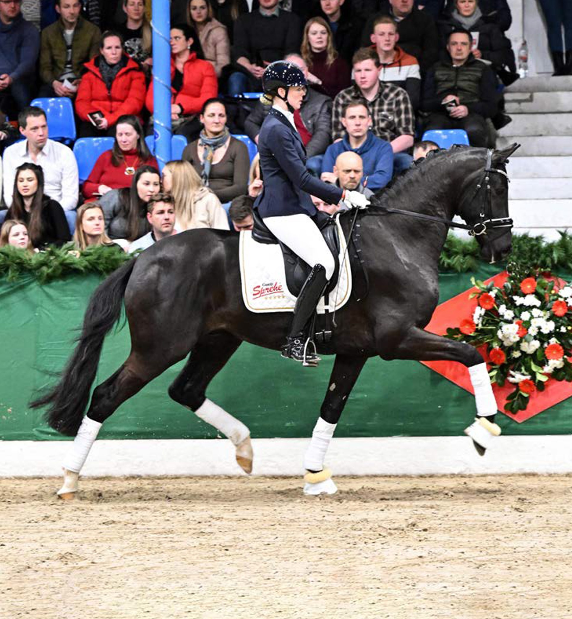 Aus der viel zu kurzen züchterischen Schaffenszeit des Desperados FRH nach dessen Weltkarriere im Viereck stammt der typfeine Nachwuchsvererber Der König. Noch jugendlich in der Aufmachung, kann Der König bereits jetzt mit viel Charme, Langbeinigkeit und Bewegungsstärke auftrumpfen. Typisch Desperados ist insbesondere Der König`s Schritt von besonderer Güte.