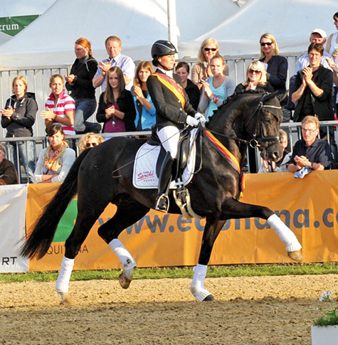 Ein Phänomen im Viereck mit mustergültiger Karriere: Fürst Fugger war Prämienhengst der NRW-Hauptkörung in Münster-Handorf 2008, Bundeschampion der vierjährigen Hengste 2010 und strahlender und umjubelter Bundeschampion der sechsjährigen Dressurpferde 2012. Inzwischen ist er mit Kristina Bröring-Sprehe mehrfach hoch platziert auf dem Niveau des Prix St. Georges. Makellos im Exterieur, zeichnet er sich durch überdurchschnittliche Grundgangarten aus: Bestechend in der Trabmechanik, raumgreifend im Schritt und groß übersetzt die Galoppade, bei immer wieder begeisternden Versammlungsmöglichkeiten.