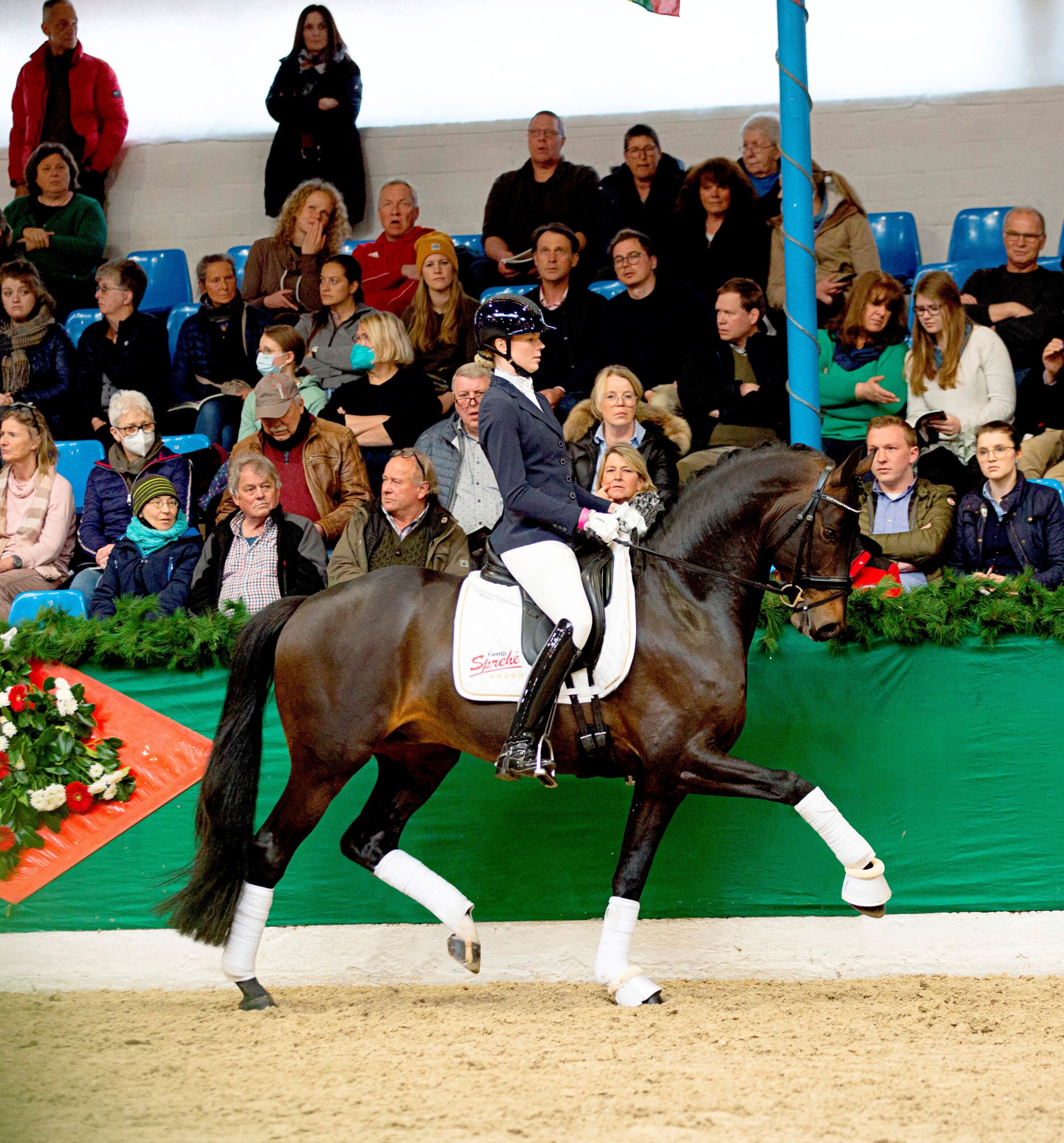 Galaxy ist der Prototyp eines modernen Dressurpferdes. Mit ganz viel Noblesse und Eleganz weiß er sich wie eine Feder zu bewegen. Trotz aller Leichtfüßigkeit basiert sein Gangpotential in Trab und Galopp auf einem sehr stabilen, tragfähigen Hinterbein. Der Schritt ist immer im Takt, und glänzt durch Raumgriff und Fleiß, Galaxys Leistungsbereitschaft ist beispielhaft. Nachdem er 2019 erfolgreich sein 50-tägiges Hengstexamen in Schlieckau abgelegt hatte, erstrahlte er in 2020 mit Galaauftritten unter dem Sattel von Simone Pearce. Nach einem erstklassigen ersten Fohlenjahrgang mit der Münsteraner Preisspitze „Ganz großes Kino“ (Muttervater Samarant / Zuschlagspreis 30.000 E) wurde Galaxy in Vechta als 1cHauptprämiensieger herausgestellt.