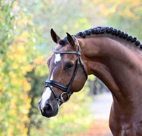 Im Idealtyp eines Beschälers weiß Baggio seinen Betrachter zu vereinnahmen. Langbeinigkeit, überragende Typprägnanz und ein moderner Habitus treffen in einer Idealkonstellation auf einen korrekten, aber auch mit genügend Substanz versehenen Körperbau, der eine maximale Kraftentfaltung in jeder Situation ermöglicht. So ist auch der Bewegungsablauf im Trab wie im Galopp für ein Springpferd von außerordentlicher Güte. Am Sprung offenbart Baggio schier unbegrenztes Vermögen mit atemberaubender Schnellkraft. Schonend aufgebaut startete Baggio nach Siegen mit Höchstnoten in Springpferdeprüfungen 2023 international und in der schweren Klasse unter Tobias Meyer mit vielen Topplatzierungen durch. Bei jedem Auftritt im Parcours kann er mit seinen scheinbar unbegrenzten Möglichkeiten faszinieren.