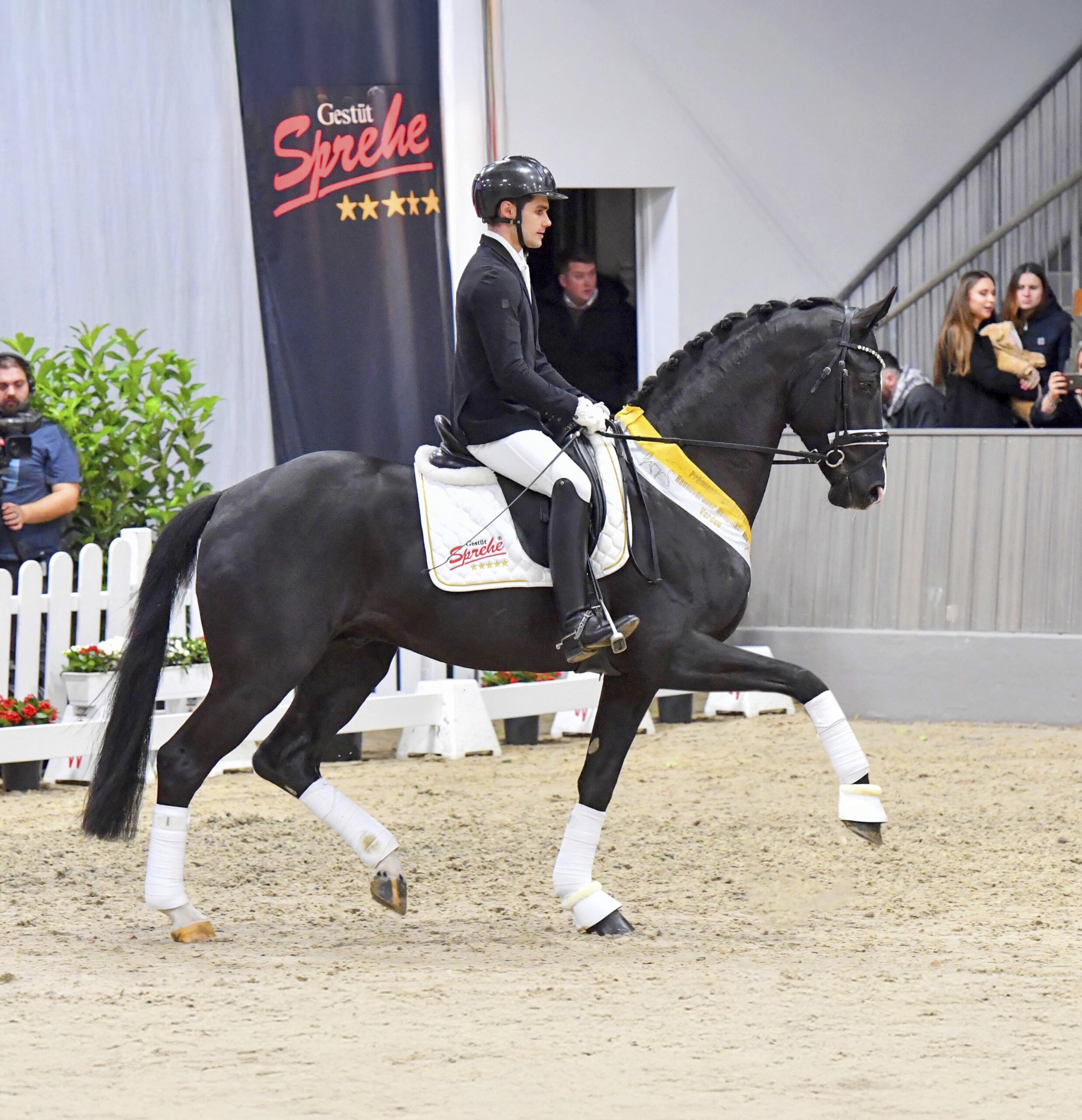 In jeder Hinsicht bedeutend und über jeden Zweifel erhaben, so präsentierte sich Don Vivaldi anlässlich der Hannoverschen Hauptkörung in Verden. Auf der Dreiecksbahn, an der Longe und in der Freilaufpräsentation – immerzu trumpfte er mit seiner Ganggewalt und seiner Selbsthaltung auf und wurde als Prämienhengst gefeiert. Don Vivaldi ist ein hochtalentierter Dressurhengst und von besonders leistungsbetontem Geblüt, ein Segen für die Zucht.