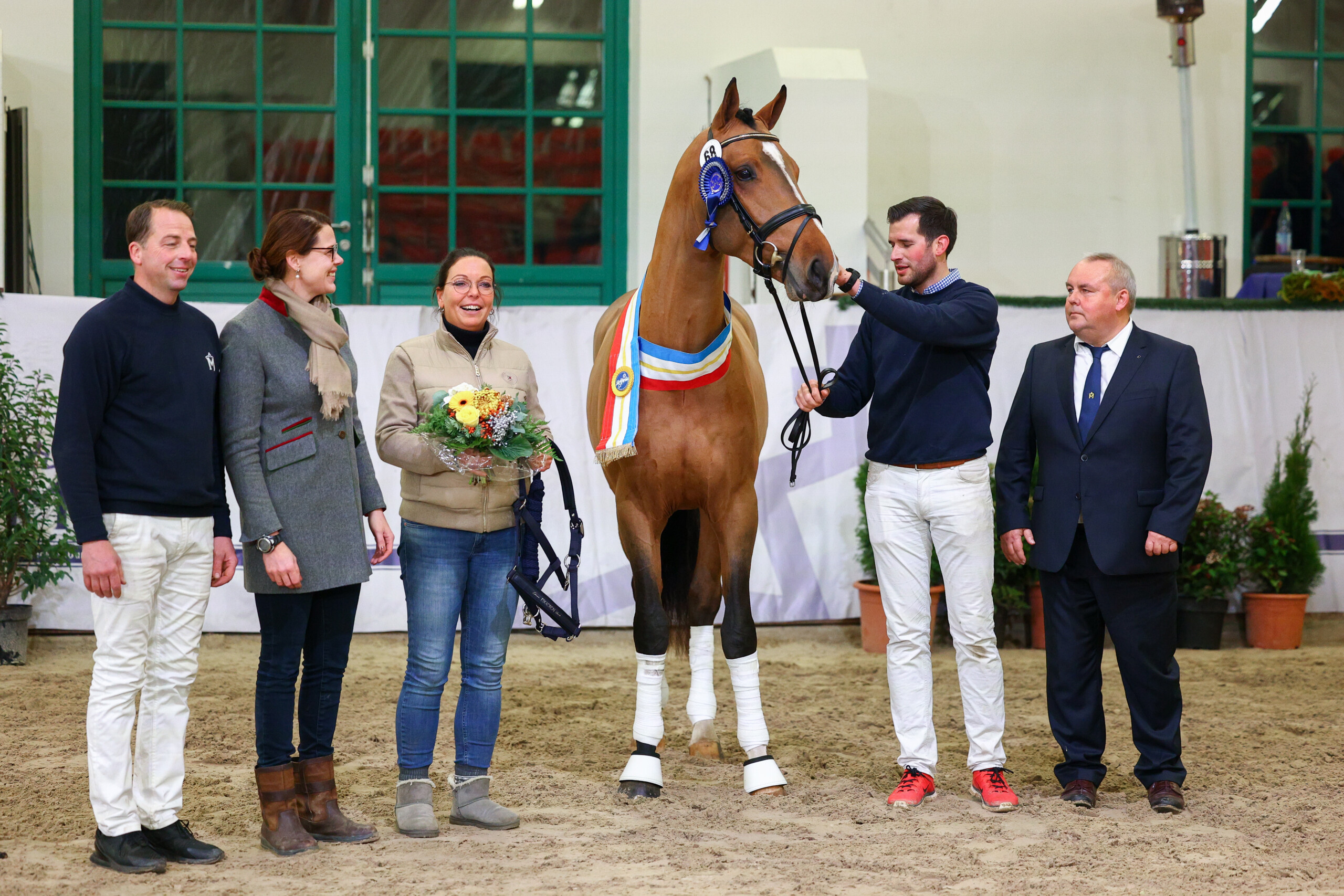 Tiebreaker ist der strahlende Körsieger der Mecklenburger Körtage 2022. Der streng auf Leistung gezogene Athlet glänzt nicht nur mit beeindruckenden Springwerten, er präsentiert auch als überzeugendes Gesamtpaket mit echten Beschälerqualitäten wie Habitus und Gangpotential. Sein Talent konnte Tiebreaker auch in der Kurz-VA mit einer Endnote von 8,41 belegen. Anfang des Jahres unterstrich er seine Leistungsfähigkeit auf dem Sporttest in Münster-Handorf, wobei er für sein Vermögen die 8,6 erhielt.