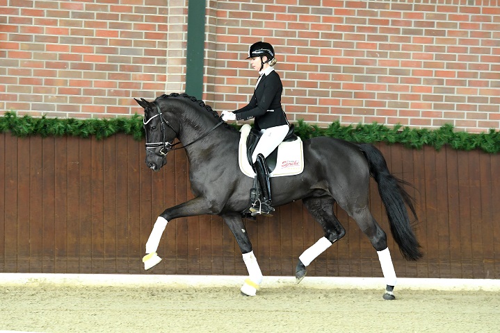 Kraftvoll auftretender Strahlemann in der begehrten Rappfarbe – Van Dijk erweist sich in jeder Phase als opulentes Bewegungstalent. Die immerzu aus einer aktiven, bereits jetzt mit beeindruckender Tragkraft versehenen Hinterhand fußende Trabarbeit, hat Erlebnischarakter. Stets im Takt, bei großzügiger Mechanik und bedeutender Schwungentfaltung, so setzt Van Dijk Maßstäbe.